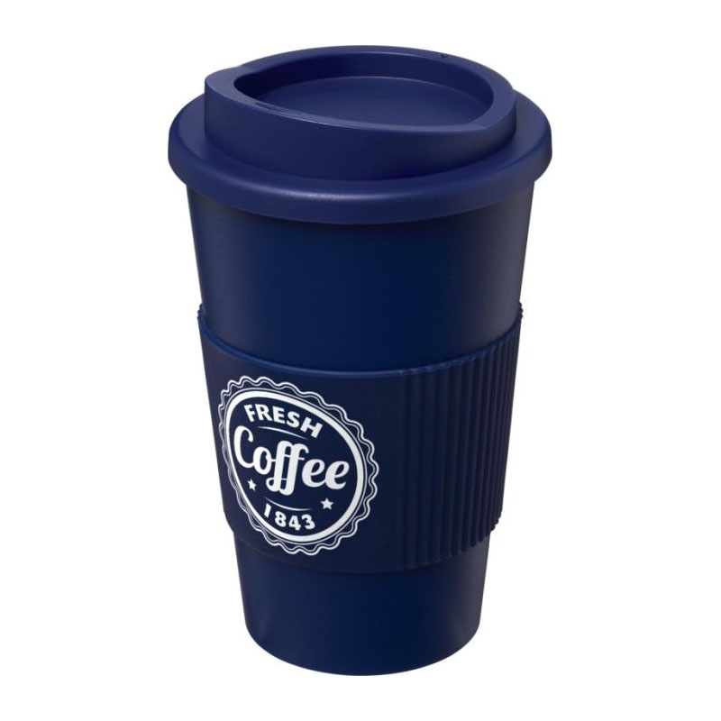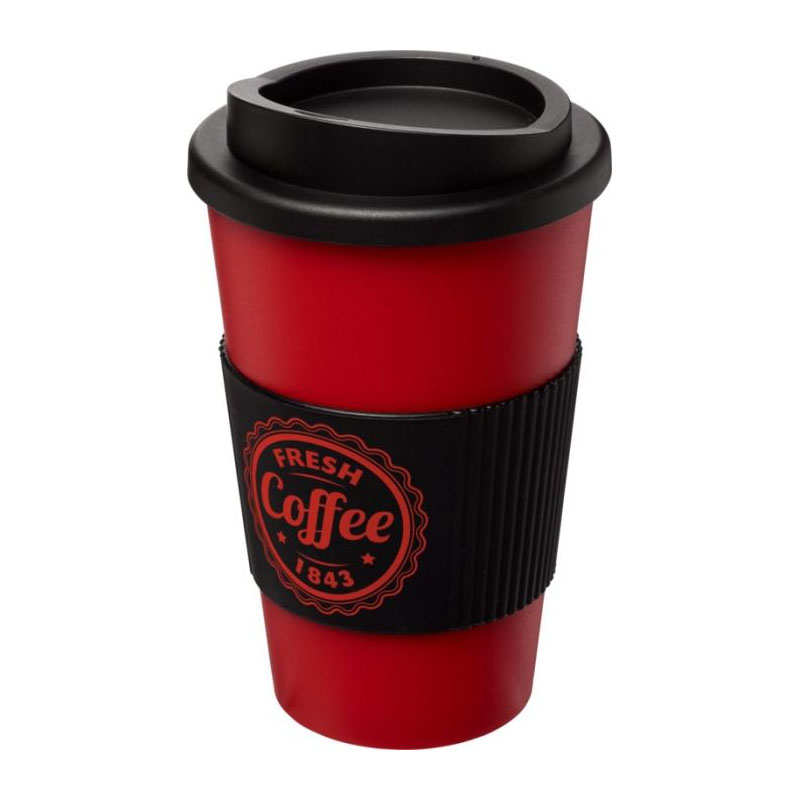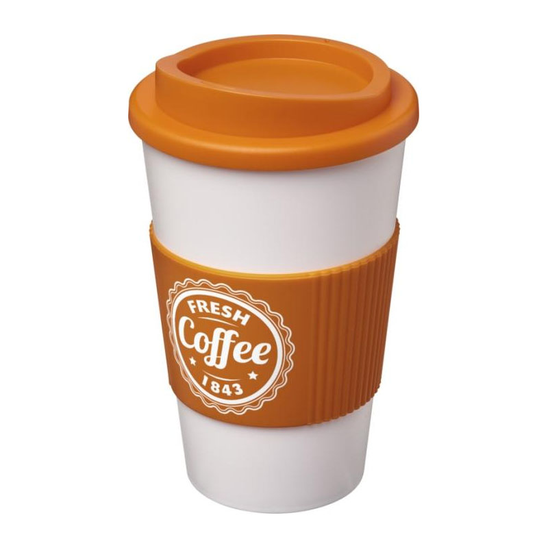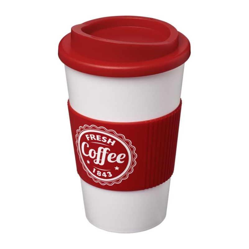 Kaksiseinäinen eristetty kahvimuki, jonka tilavuus on 350 ml. Mukissa on turvallinen kierrettävä kansi ja silikoninen grippi. Juomamuki on täysin kierrätettävä ja pakattu kompostoitavaan pussiin.