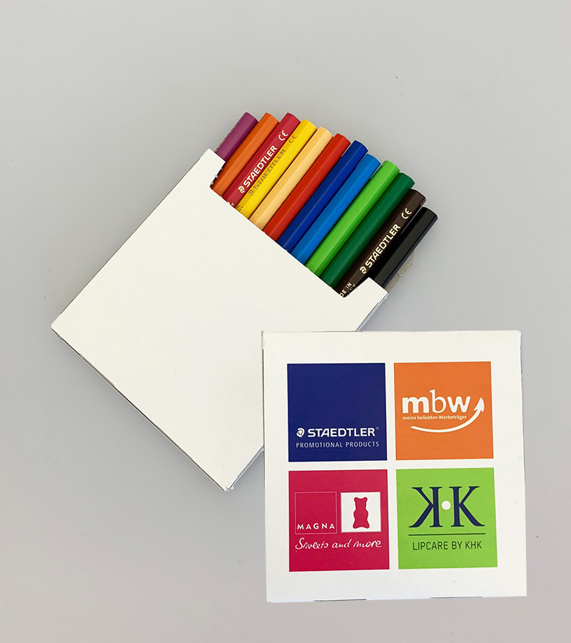 Laadukkaat Staedtler -värikynät pahvikotelossa, kynän pituus 87 mm.