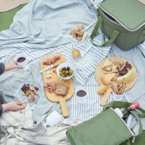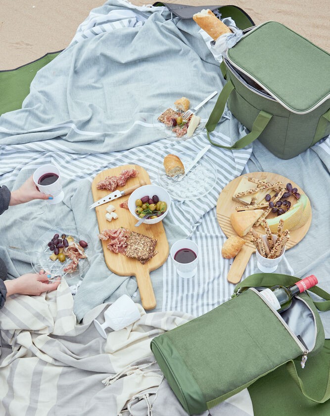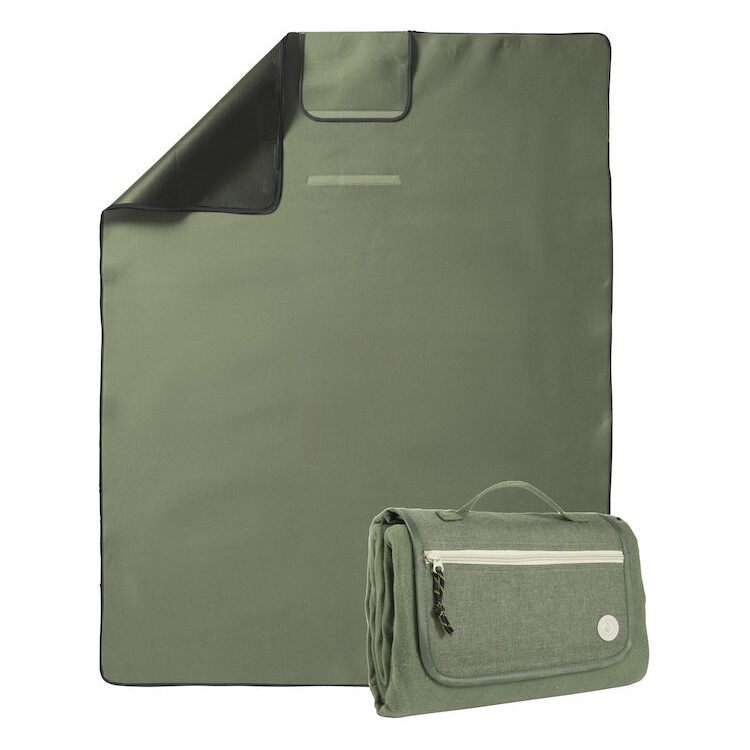 Ylellinen ja urheilullinen piknikpeitto, jossa vedenpitävä alapuoli ja vetoketjullinen säilytystasku. Valmistettu kierrätetyistä PET-pulloista. Peitto on helppo kääriä kokoon ja sitä voidaan kuljettaa kahvan avulla.