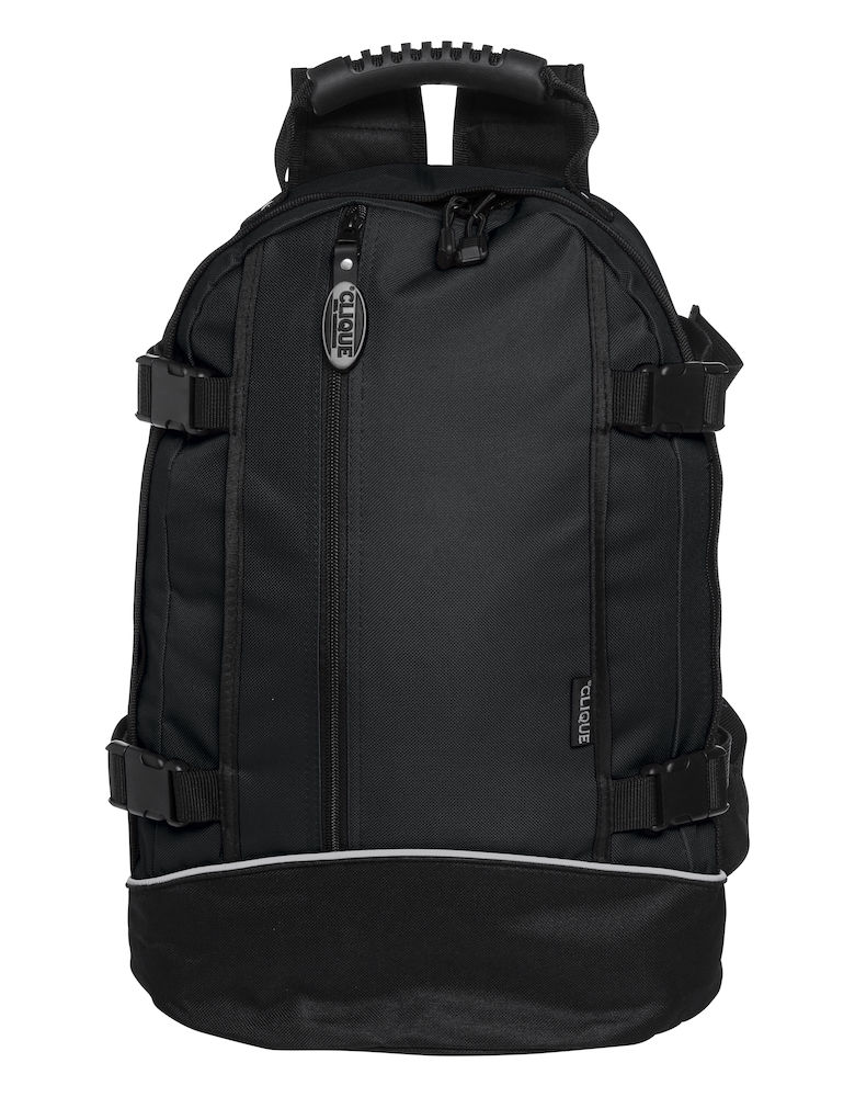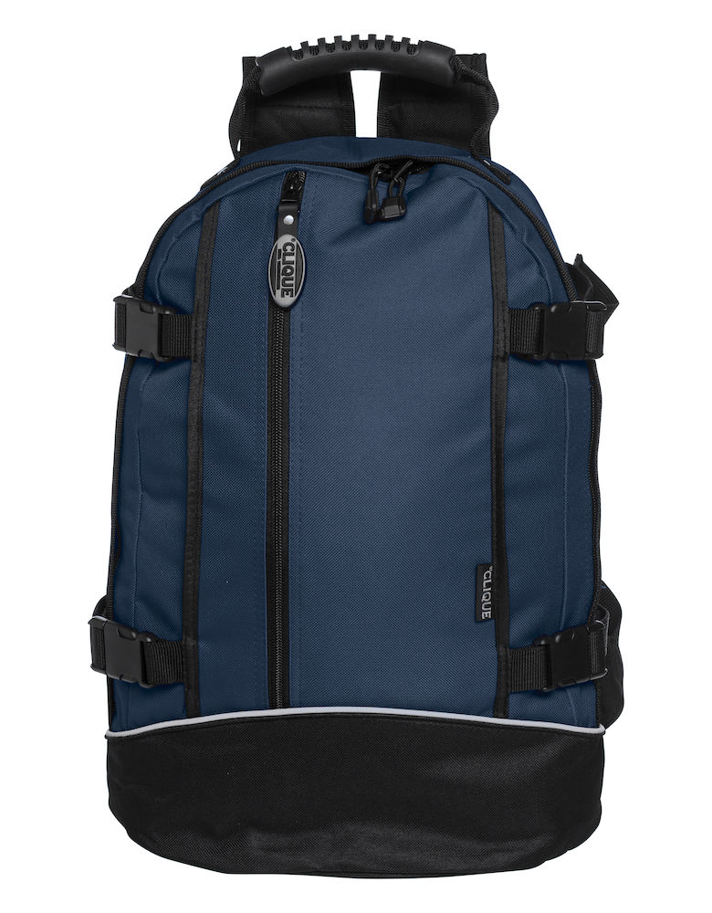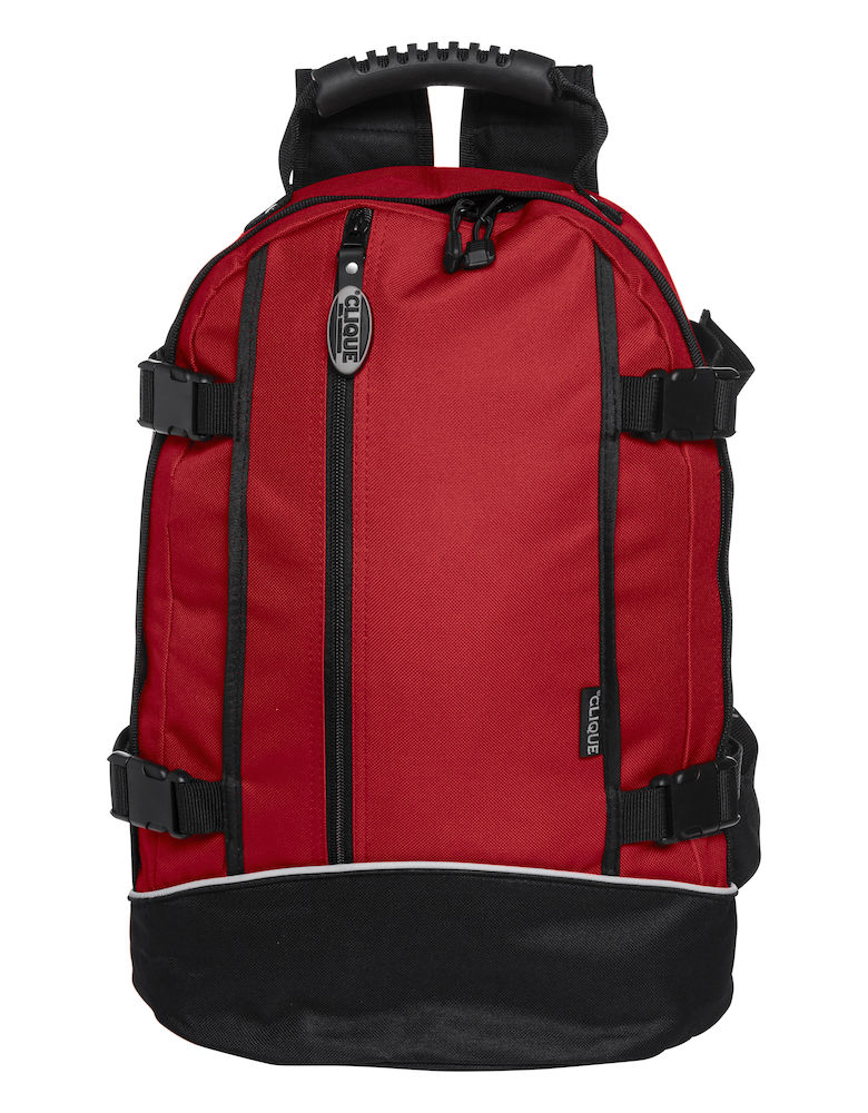 Käytännöllinen monitoimireppu, jossa on runsaasti tilaa. Repun molemmilla sivuilla on säädettävät hihnat ja heijastavat tereet. Repussa on vetoketjullinen tasku etupuolella, paljon pieniä käytännöllisiä taskuja, erillinen kännykkätasku sekä tukeva kumipintainen kantokahva. Kantohihnojen pituus on säädettävissä ja hihnat sekä selkäosa on pehmustettu.