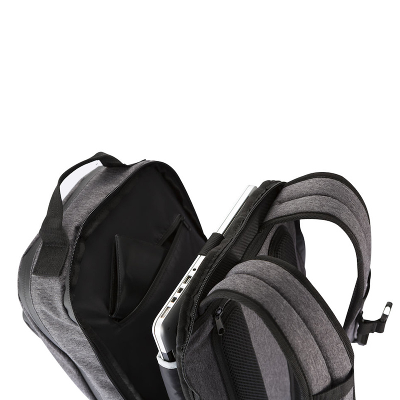 Reppu joka pitää tavarasi järjestyksessä. Yksi iso säilytystila jossa erillinen verkkokangaslokero 15″ kannettavalle tietokoneelle tai tabletille. Yksi etutasku, jossa pienet tavarat pysyvät järjestyksessä, selänpuoleinen vetoketjullinen tasku ja pohjassa sijaitseva piilotasku pitävät arvotavarat turvassa. TPU-vetoketjut ja heijastavat vetimet. Laukun sisällä avainpidike.