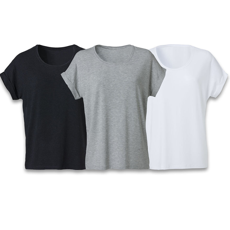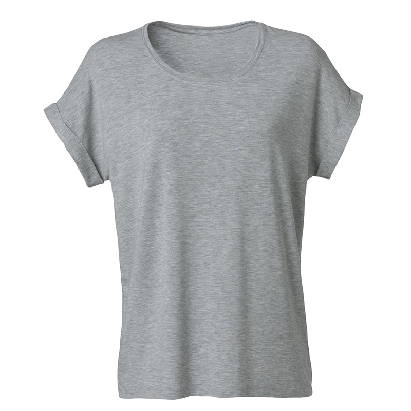 Naisellinen T-paita miellyttävää sekoitemateriaalia. Hieman väljempi malli jossa sivusaumat sekä käännetyt hihansuut.