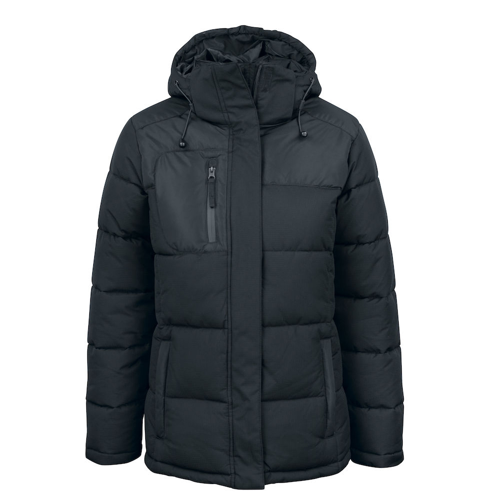 Lämmin toppatakki talveksi. Vedenkestävä SBS vetoketju rinta- ja etutaskuissa. Irrotettava ja säädettävä huppu. Kaksi verkkotaskua sisällä. Kiristysnyöri helmassa ja naisilla vyötäröllä.