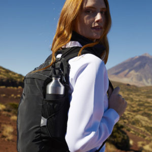 Hengittävä rakenne selkäpuolella, tyylikkäitä värikkäitä yksityiskohtia. Tilavuus 24 l.