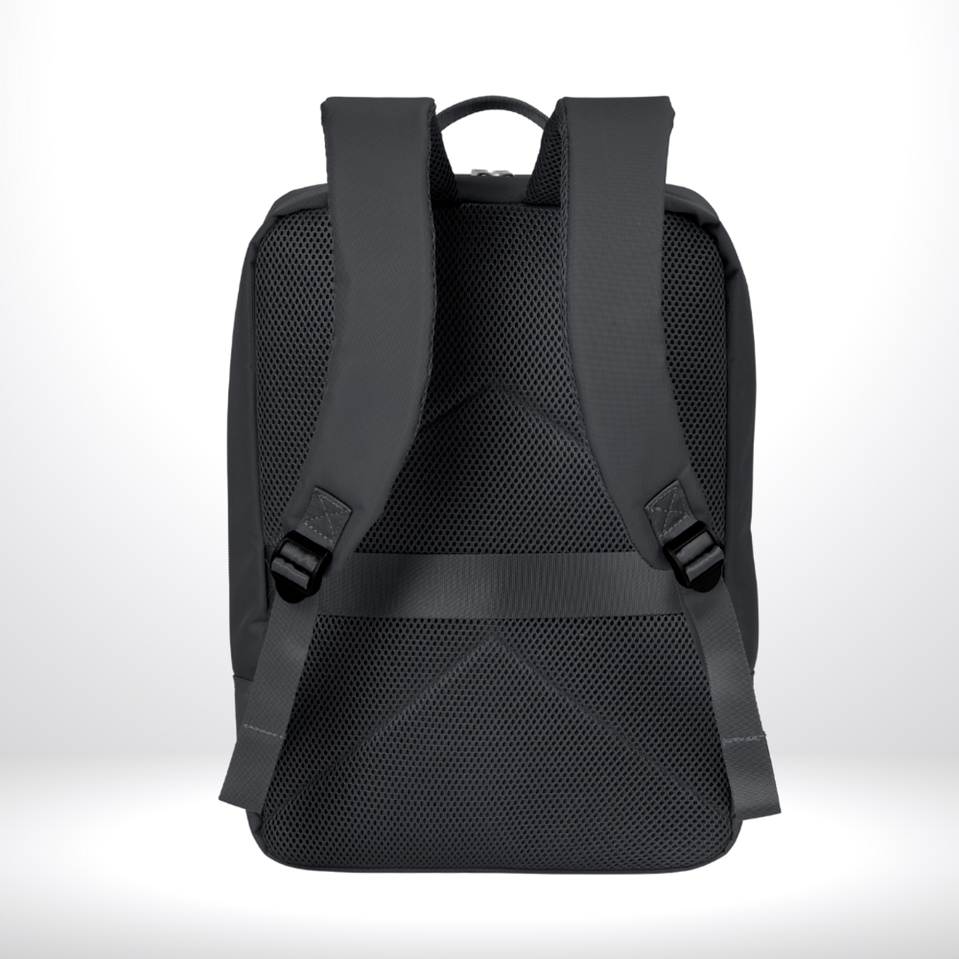Tyylikkäästi muotoiltu tietokonereppu. Sisällä pehmustettu tasku 15″ tietokoneelle sekä toinen tasku