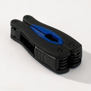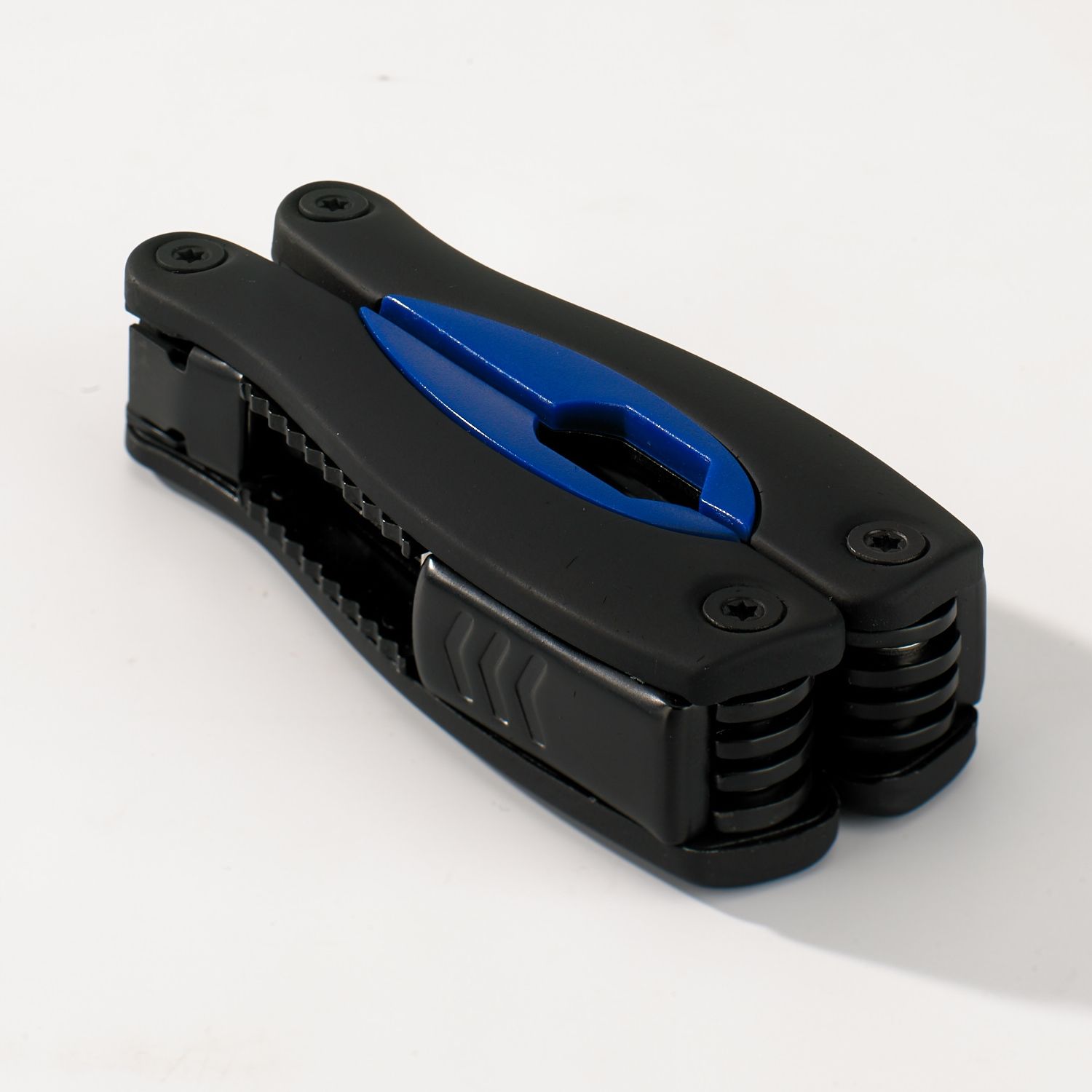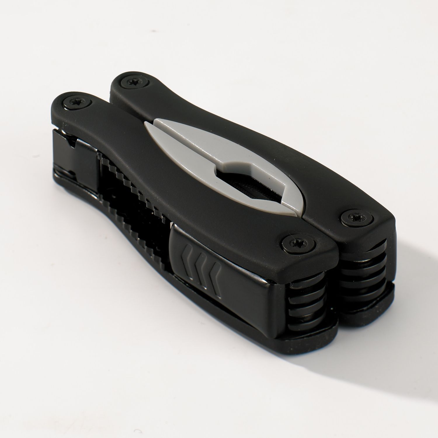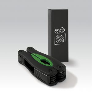Ruostumattomasta teräksestä valmistettu monitoimityökalu, jossa on kumilla päällystetty pinta. Työkalussa on pihdit, saha, veitsi, erilaiset ruuvimeisselit, pullon- ja tölkinavaaja sekä kynsiviila. Turvalukitus, joka pitää terät turvallisesti kiinni. Pakattu säilytyspussiin sekä mustaan lahjarasiaan. 8 tyylikästä väriä.