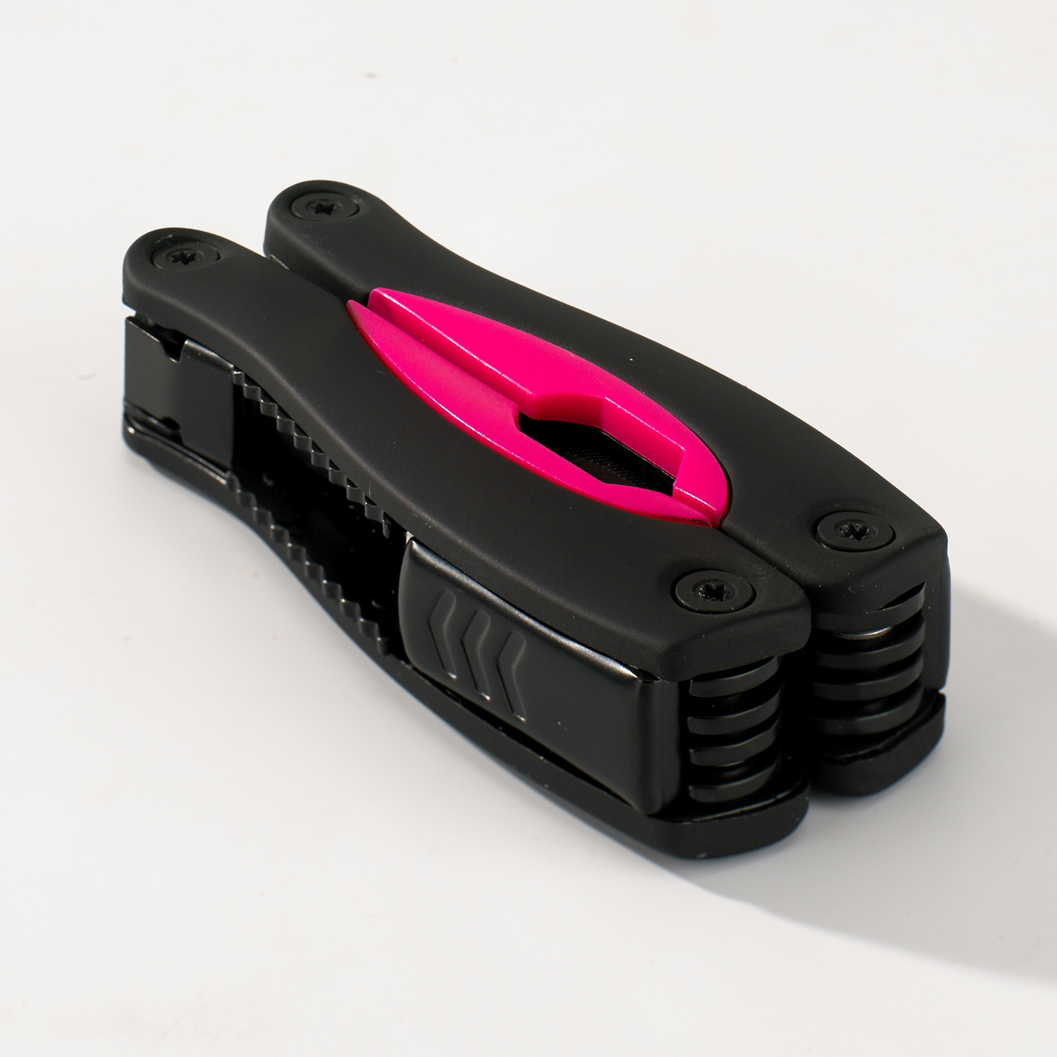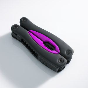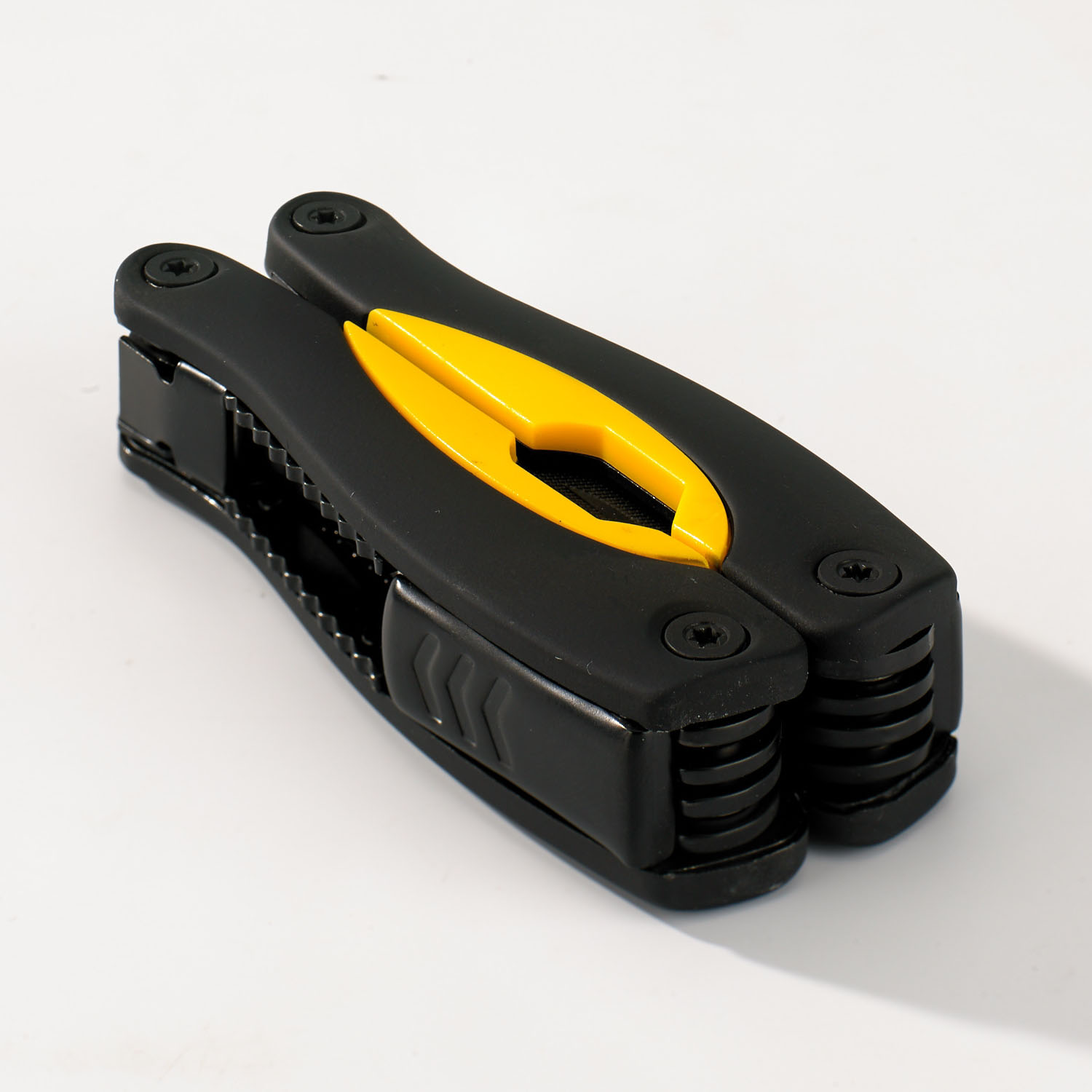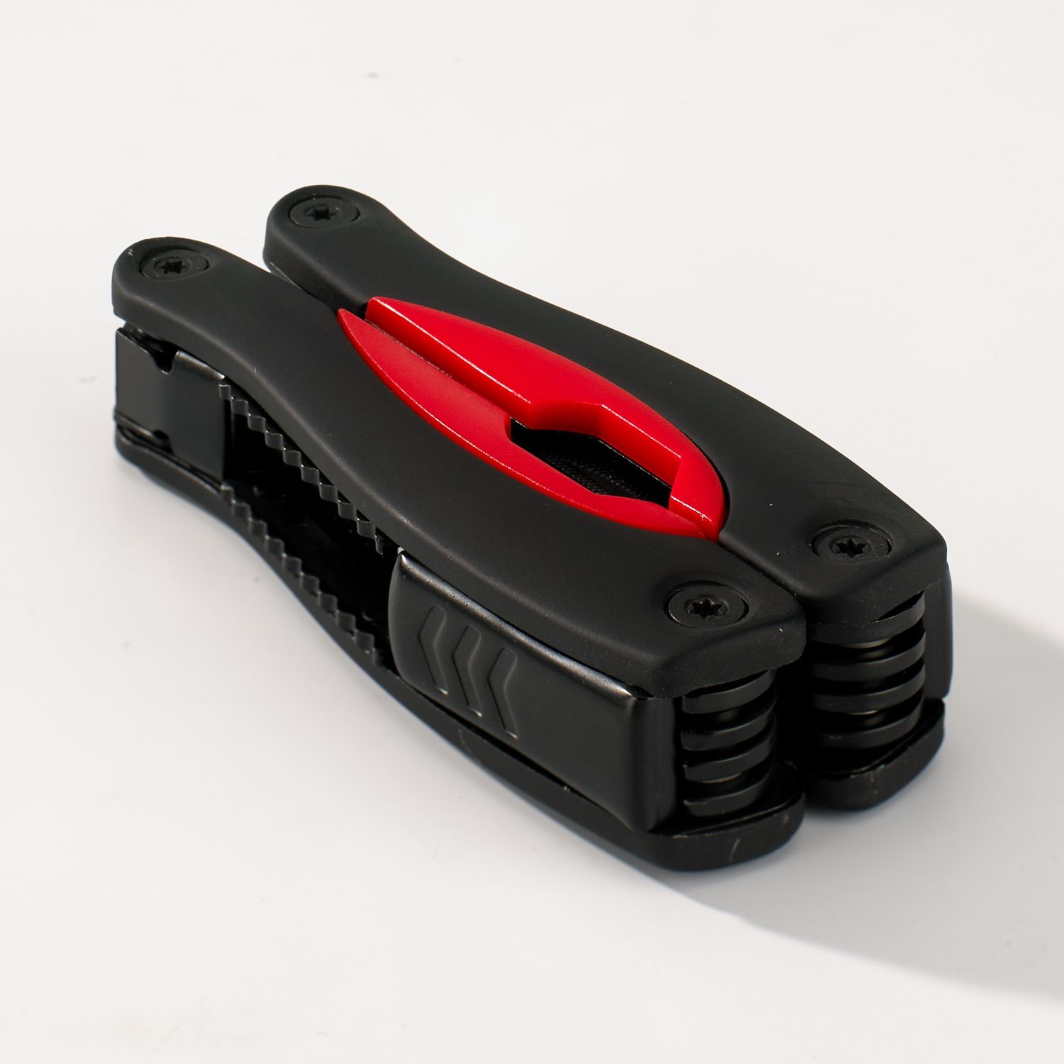 Ruostumattomasta teräksestä valmistettu monitoimityökalu, jossa on kumilla päällystetty pinta. Työkalussa on pihdit, saha, veitsi, erilaiset ruuvimeisselit, pullon- ja tölkinavaaja sekä kynsiviila. Turvalukitus, joka pitää terät turvallisesti kiinni. Pakattu säilytyspussiin sekä mustaan lahjarasiaan. 8 tyylikästä väriä.