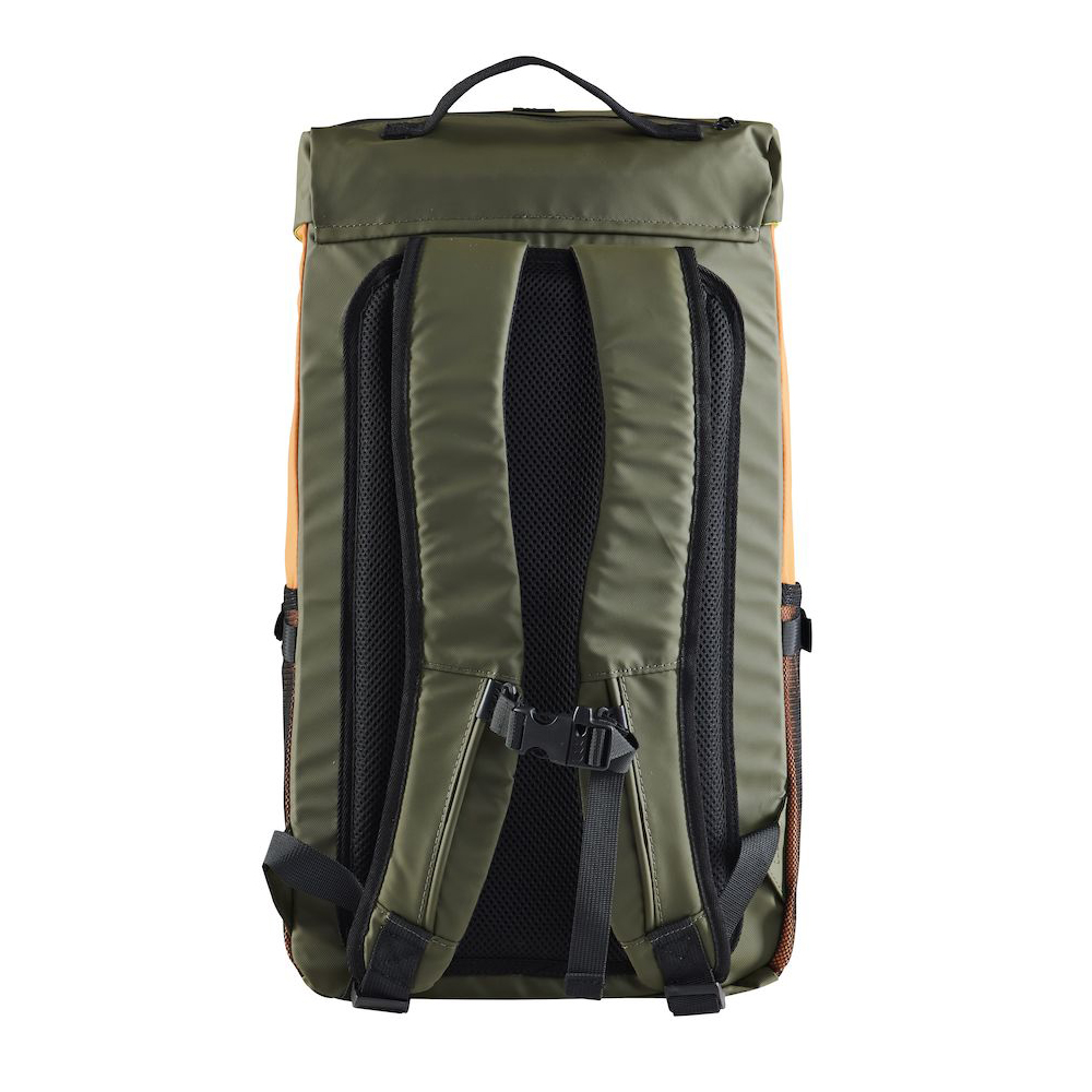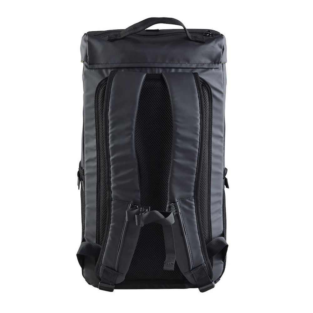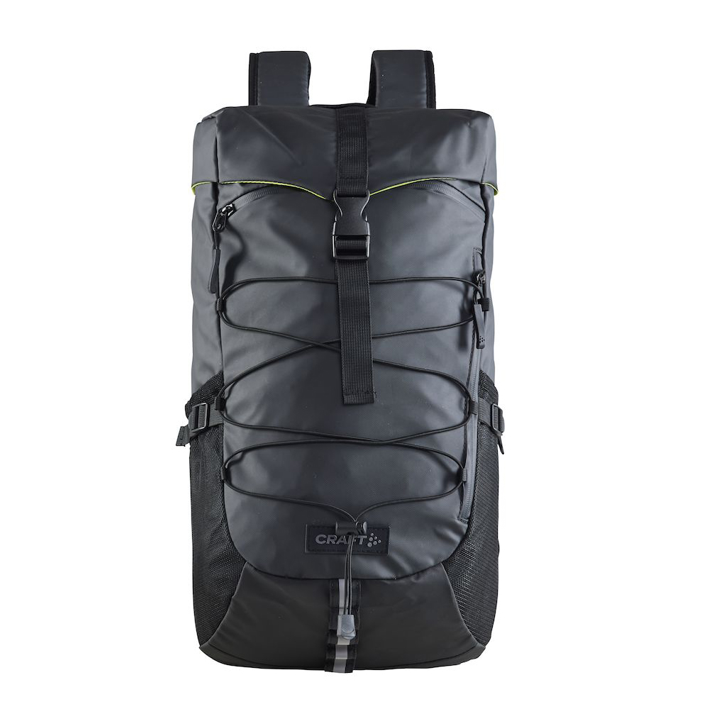 • Kierrätysmateriaalia • Vedenpitävät vetoketjut • Verkkotaskut sivuilla • Säädettävät olkaimet • Heijastava yksityiskohta • Pehmustettu tietokonetasku • 48x29x18cm