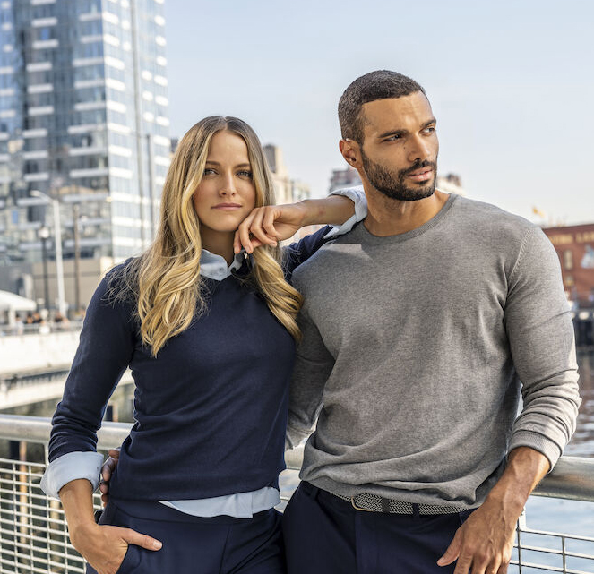 Oakville-neulepusero sopii yhteen monentyylisten vaatteiden kanssa. Neule on pehmeä ja kevyt ja sopii erityisen hyvin paidan päällä käytettäväksi. Sekoitemateriaalin puuvilla tekee neuleesta pehmeän ja nailon tuo sille kestävyyttä. Oakville on saatavana pyöreällä ja V-kaula-aukolla.