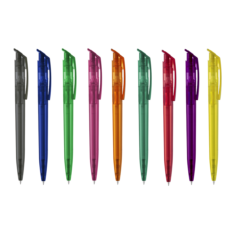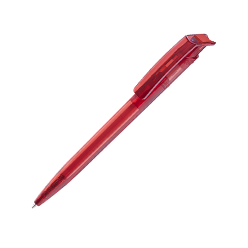 Kuulakärkikynä läpinäkyvällä rungolla. Kynät on valmistettu kierrätetyistä PET-pulloista, ympäristöystävällistä ja kestävää kehitystä ajatellen.