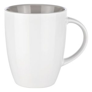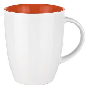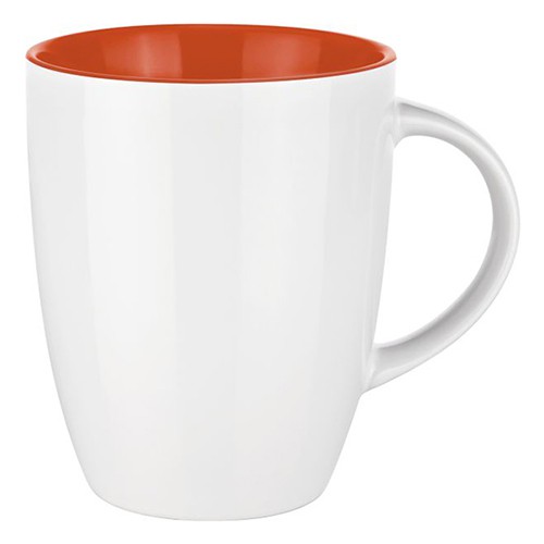Kiiltävä valkoinen muki 0,25 L. Sisäpuoli värillinen; punainen, oranssi, sininen tai harmaa.