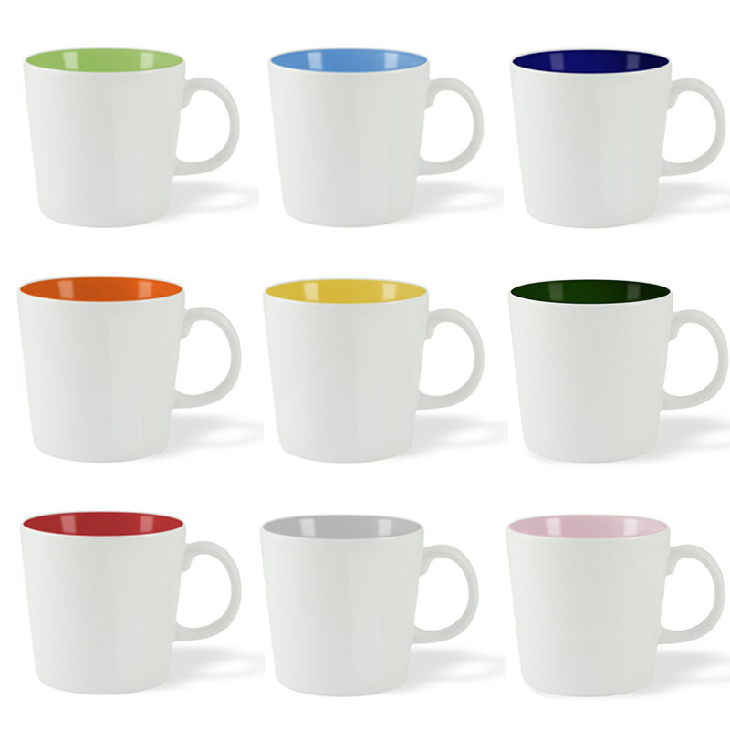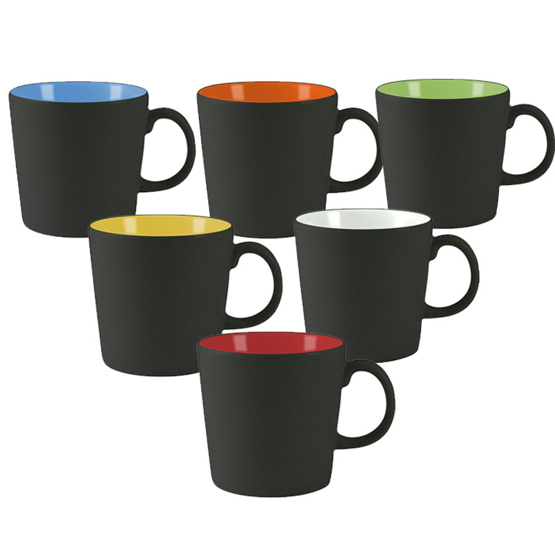 Kahvimuki 0,25 L värjätyllä sisäpinnalla. Valkoinen matta tai kiiltävällä ulkopinnalla. Mustat mukit matta ulkopinta. Useita värivaihtoehtoja.