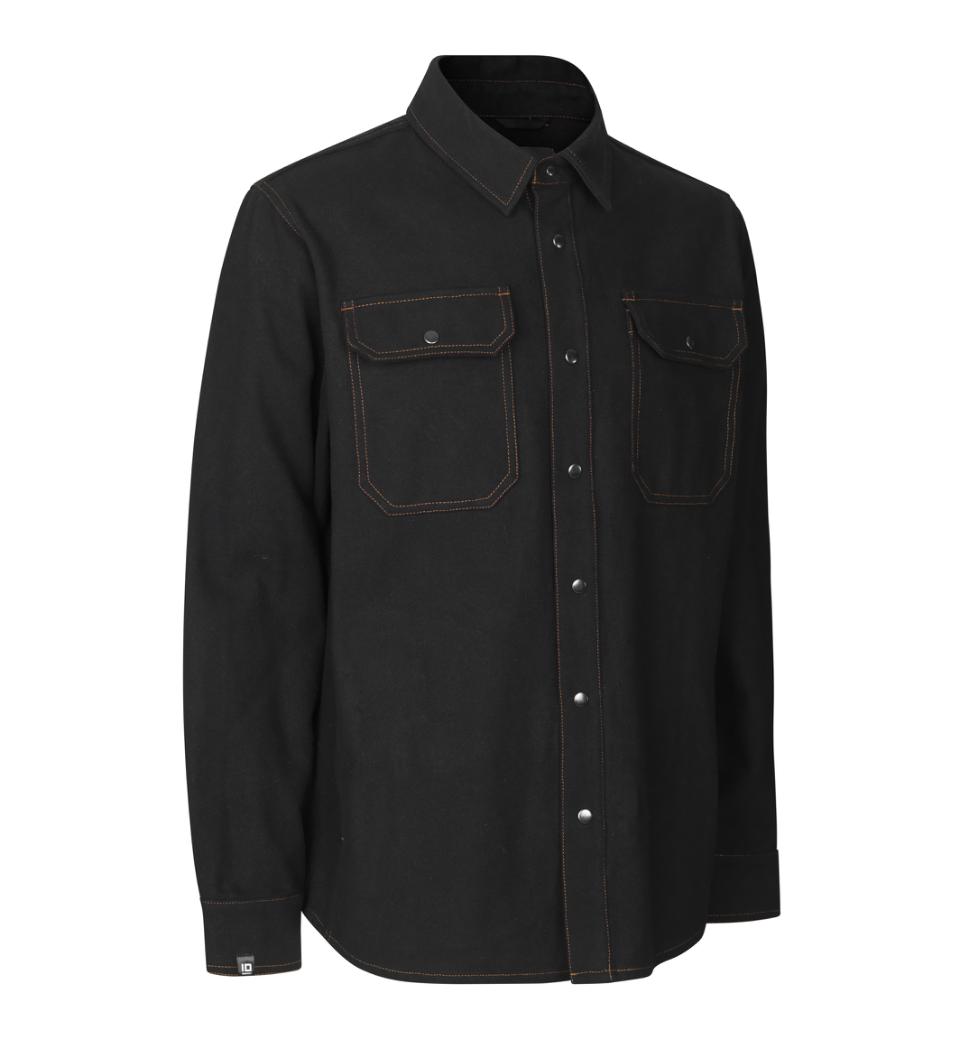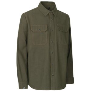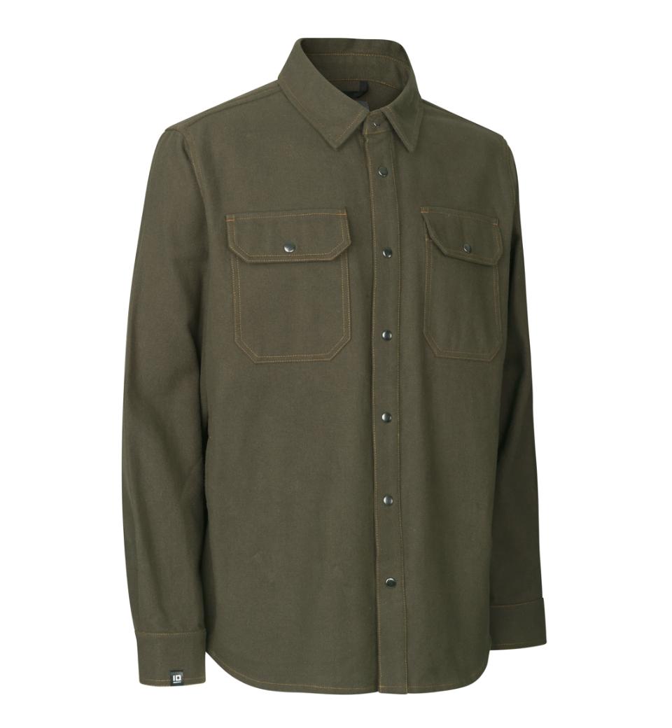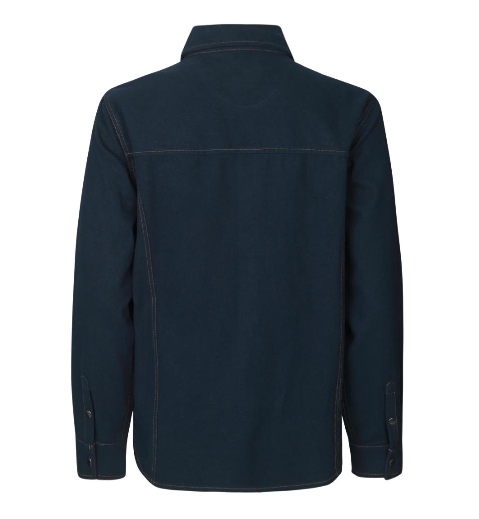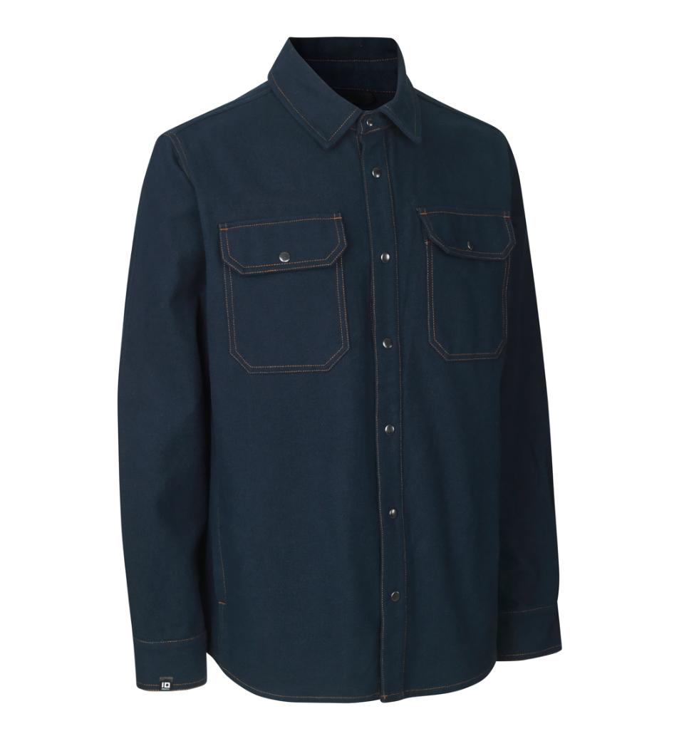 Puuvillainen päällyspaita tukevaa flanellitwilliä ja farkkuompeleita ja painonappeja. Rintataskut ja sivutaskut.