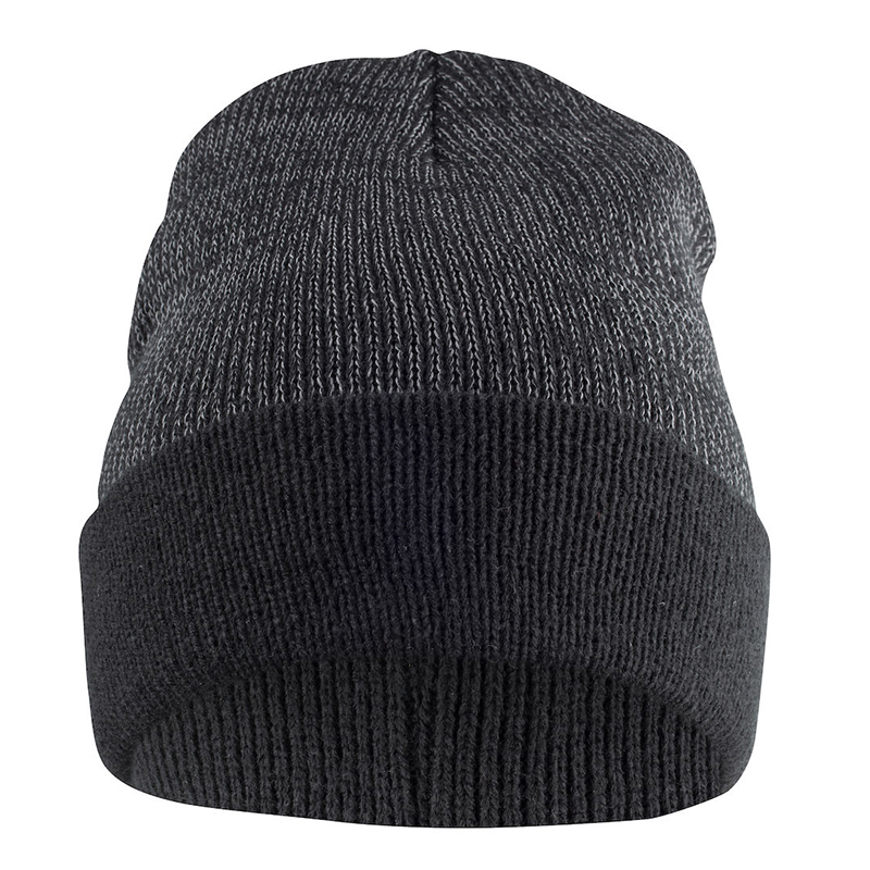 Alareunasta käännetty pipo heijastavalla neuloksella.