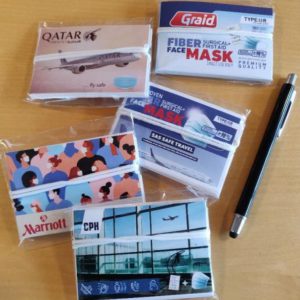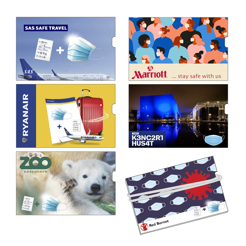 Kertakäyttöinen kasvomaski ja puhdistusliina kätevässä taskukokoisessa pakkauksessa, Maski CE hyväksytty ja standardin EN 14683:2019 mukainen. Puhdistusliina sisältää 70 % alkoholia.Pakkauksen voi kustomoida omalla designilla.