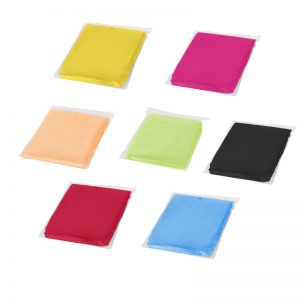 Kertakäyttöinen sadeviitta pussissa. Useita värivaihtoehtoja.