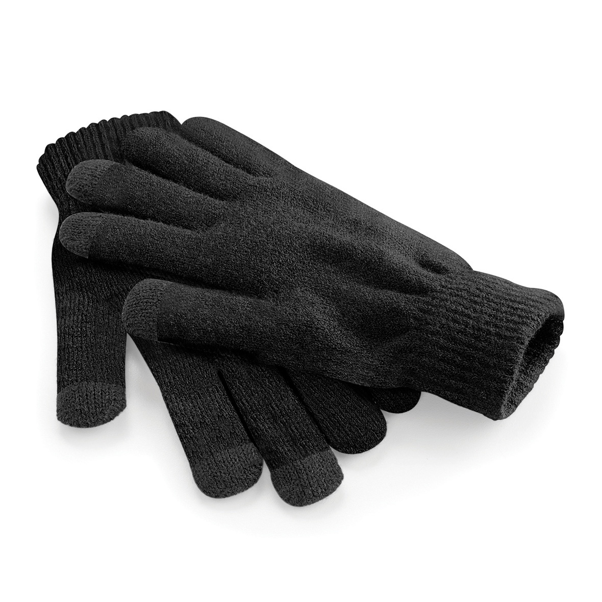 Sormikkaat joita voi käyttää kosketusnäyttölaitteiden kanssa, Peukalon, etu- ja keskisormen päissä on johtavaa materiaalia.