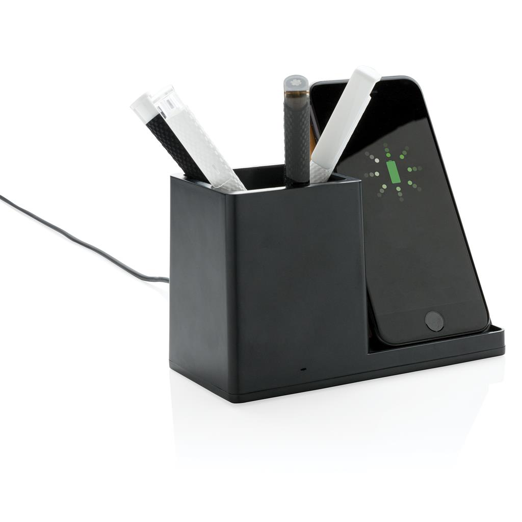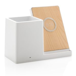10W langaton pikalaturi kynäpidikkeellä valmistettuna RCS (Recycled Claim Standard) sertifioidusta kierrätetystä ABS:stä. Langaton latausalue valmistettu FSC 100 bambusta. Takaosassa kaksi USB porttia langallista latausta varten. Langaton lataus yhteensopiva Androidin uusimpien sukupolvien sekä iPhone 8 ja uudempien kanssa. Tuote ja lisätarvikkeet PVC-vapaita.