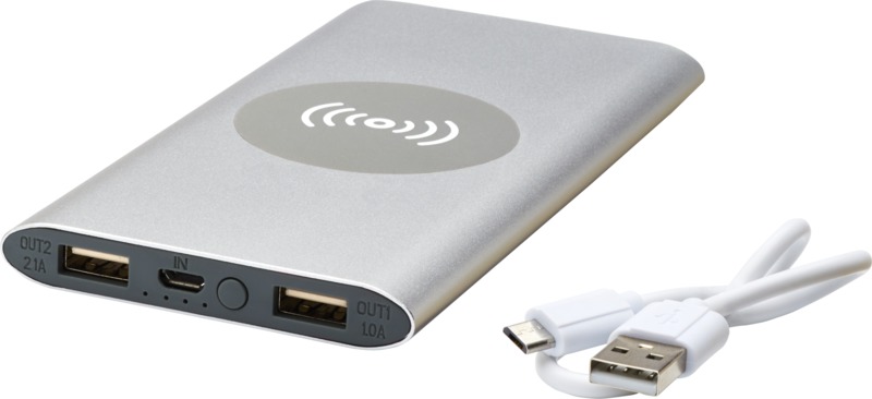 8000 mAh:n varavirtalähde alumiinikuorella. Tukee langatonta 5 W:n latausta, ja mukana tulee myös kaapelilla lataamisen mahdollistava Micro-USB-lähtö. Laturin 8000 mAh:n litiumpolymeriakku riittää älypuhelimen lataamiseen täyteen lataukseen useita kertoja. Virran merkkivalo näyttää lataustason jatkuvasti. Mukana PVC-vapaa TPE-muovista valmistettu latauskaapeli. Toimitetaan lahjapakkauksessa.
