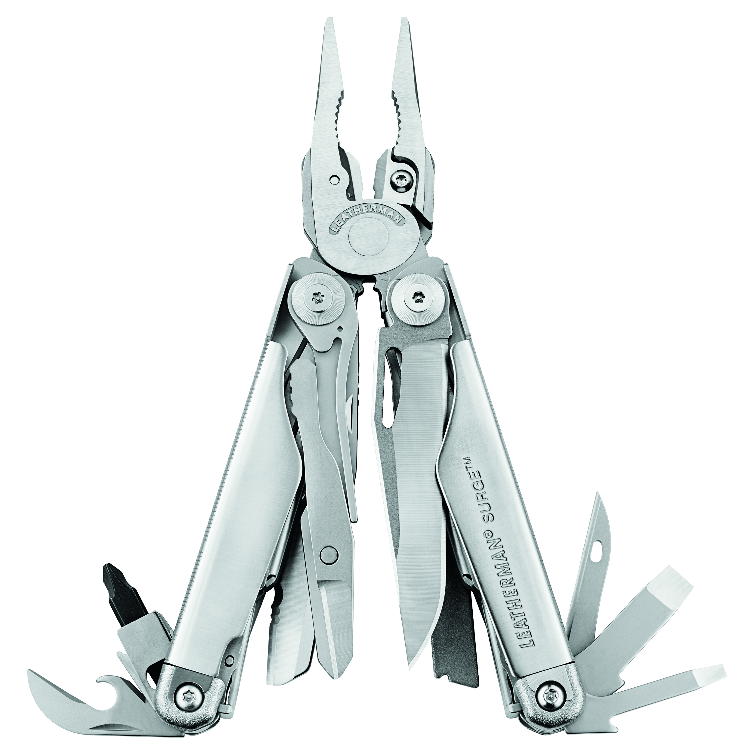 Suuret ja voimakkaat pihdit, pitkä veitsen terä, suuremmat sakset ja helppokäyttöiset terien lukitukset, tekevät Surgesta todellisen työhevosen. Ainutlaatuinen vaihtoteräkiinnike ja vaihdettavat sivuleikkurit. Neljä rungon ulkopuolelta avattavaa työkalua mahdollistavat nopean pääsyn käsiksi työkaluihin, joita käytät eniten. Surge on valmistettu kovaan käyttöön ja käsiin, jotka tekevät näitä töitä.