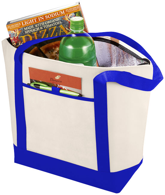 Kylmäkassi vetoketjutaskulla ja kaksoiskahvoilla. Kahvojen pituus 23,5 cm. Avoin etutasku, jossa on kynäsilmukka.