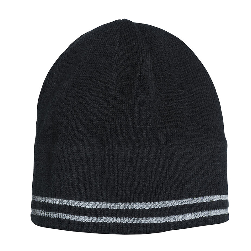 Hienoneuloksinen pipo, jonka yläosassa kuusi saumaa. Neulottu puuvillavuori. Kaksi heijastavaa raitaa lisäävät turvallisuutta.