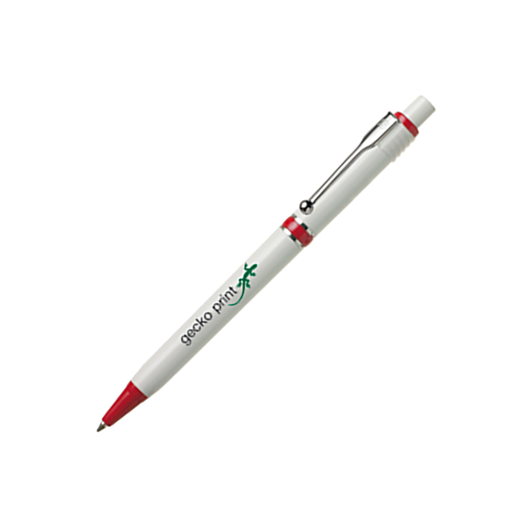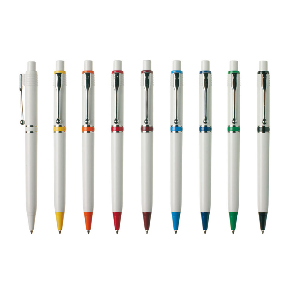 Kuulakynä värillisillä yksityiskohdilla ja kromisella klipsillä. Laaja painatusalue.
