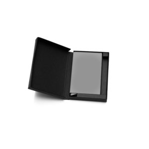 • Alumiiniseen korttikoteloon mahtuu 5 korttia, jotka nousevat porrastetusti ylös napin painalluksella