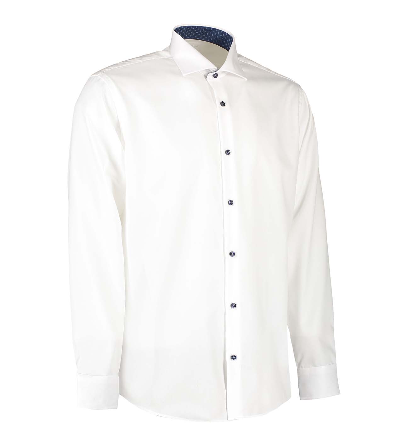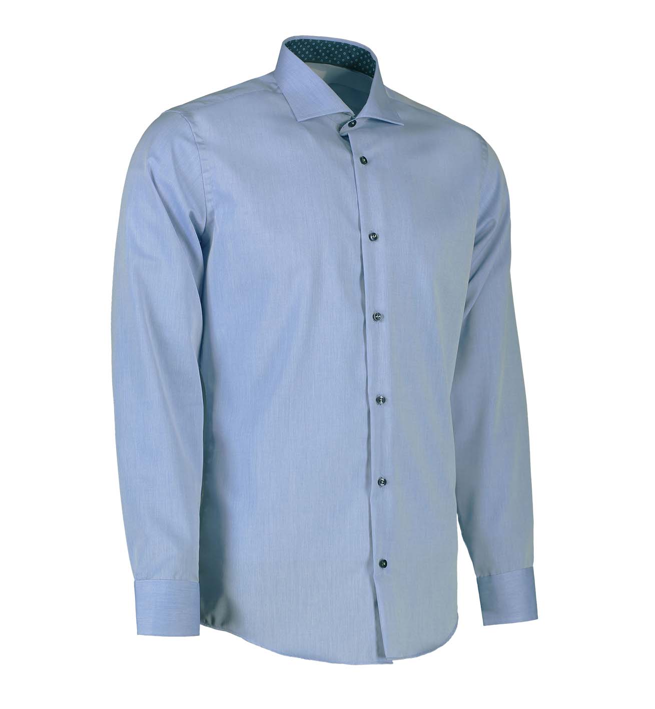 Moderni Fine Twill -laatuinen, silittämättä siisti business -paita. Klassinen ja miellyttävä materiaali, leikattu kaulus. Ajaton virginia-kuviointi. Miesten ja naisten malli.