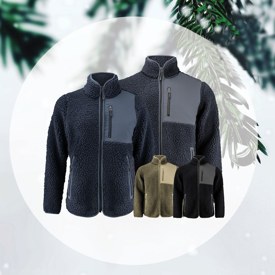Materiaali: Sherpa-fleece 100 % kierrätetty polyesteri, 400 g/m². Tehostekangas: 50 % kierrätetty polyesteri, 50 % polyesteri, 160 g/m².