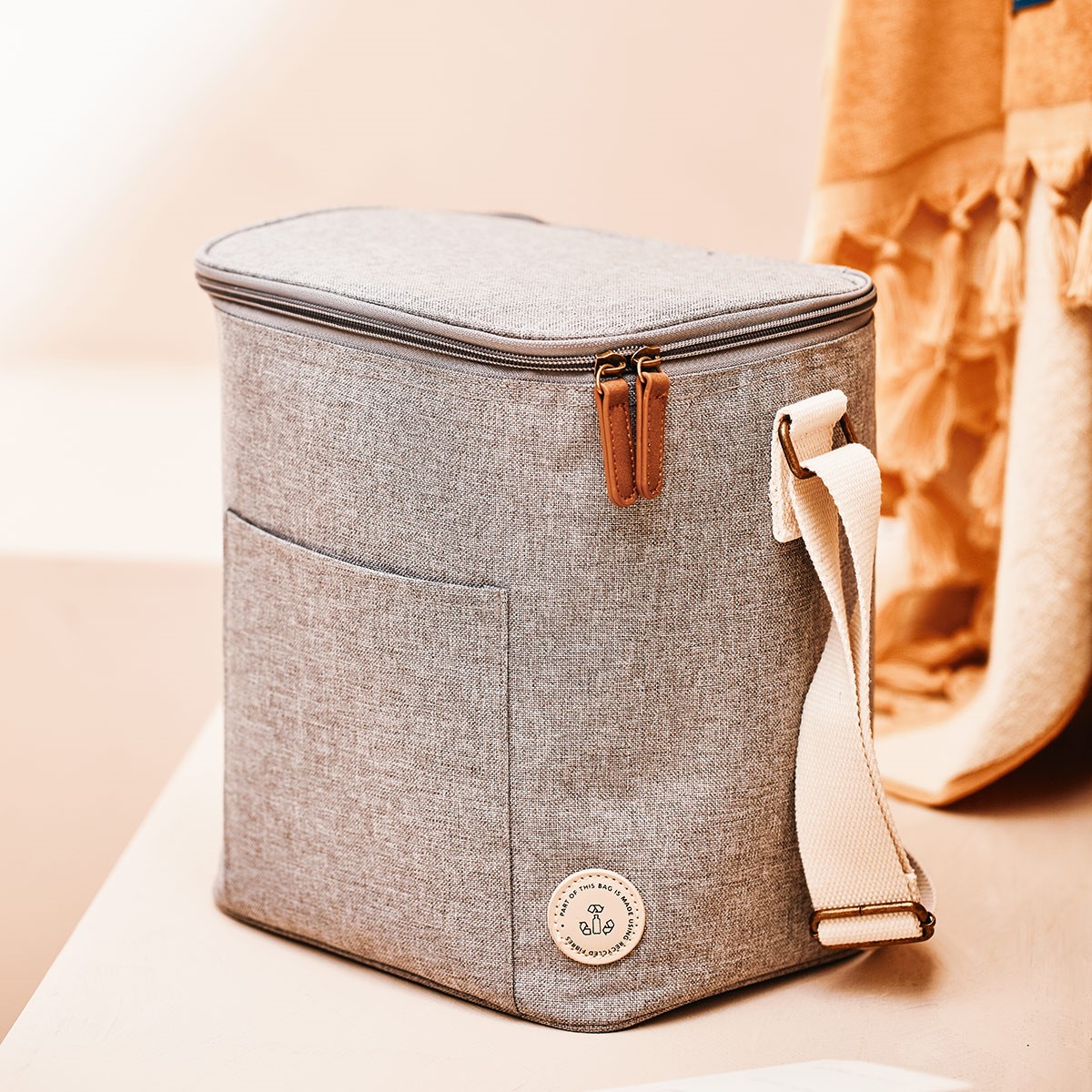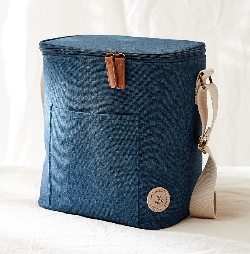 Hieman normaalia pienempi kylmälaukku sopii hyvin pienen porukan herkuille, täsmäostoihin kaupasta tai vaikkapa tuhdin lounaan ja smootieiden kuljettamiseen. Kantamista helpottaa olkahihna ja kaksoiskahvat. Paksu kylmävuoraus pitää tuotteet pitkään kylminä ja korkealuokkaiset kangasmateriaalit varmistavat laukun pitkän käyttöiän. Kauniisti meleerattu polyesterikangas on 50-prosenttisesti valmistettu kierrätetyistä PET-pulloista.