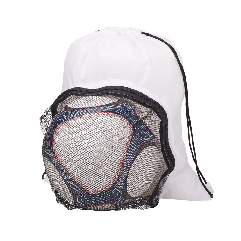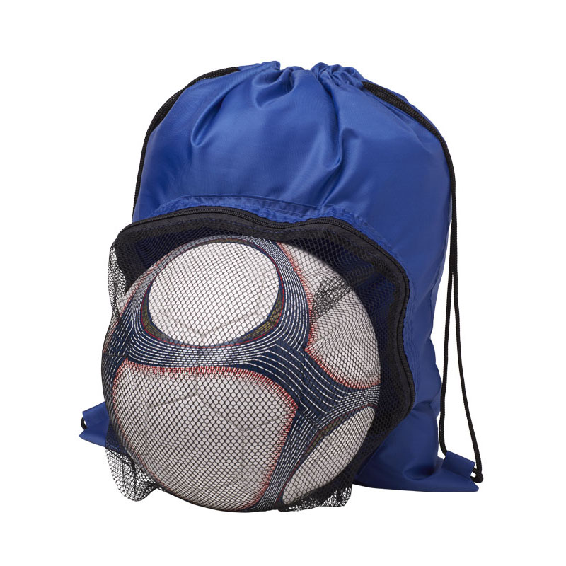 Urheilureppu kiristysnyörillä. Etutasku on jalkapallon säilytystä varten. Värivaihtoehtoja ovat sininen, punainen, valkoinen ja musta.