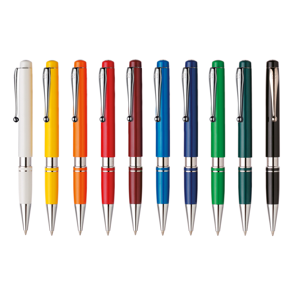 Kauniisti muotoiltu kuulakärkikynä kromatuilla yksityiskohdilla. Kynän yläosa toimii painomekanismina.
