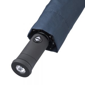 Open/close automaatti minivarjo. Alumiinivarsi. Kääntyvä Led-valo kahvan päässä.
