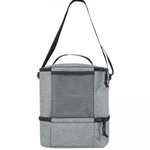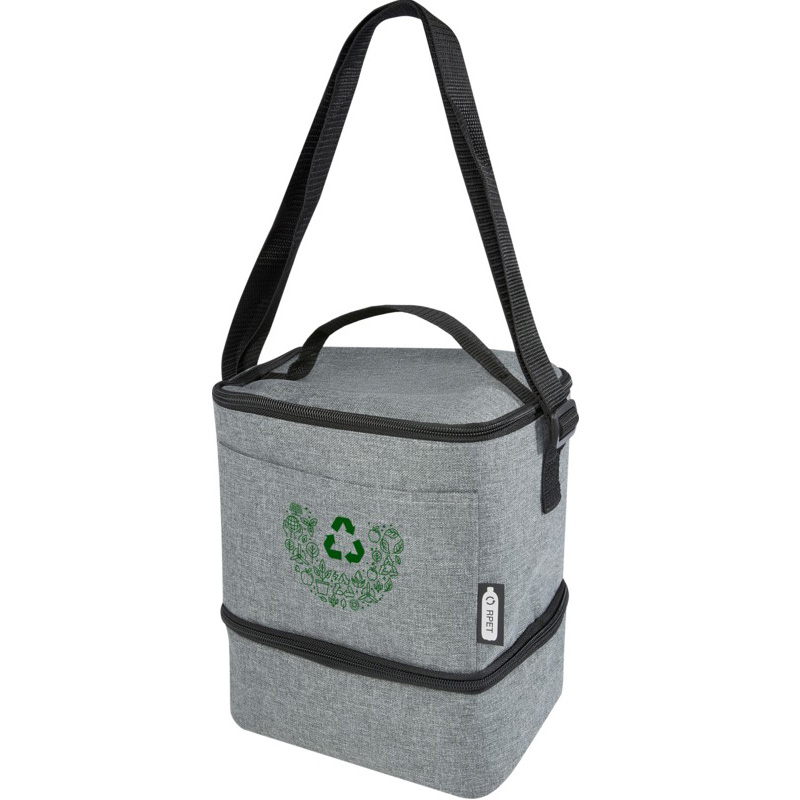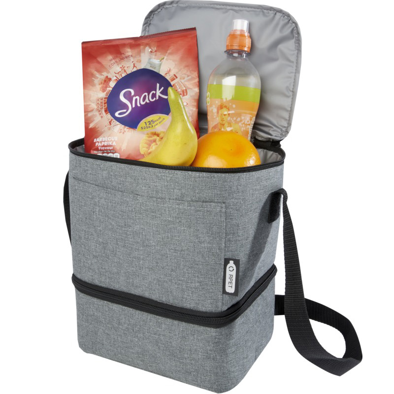 Tundra kierrätetty kylmälaukku tarjoaa runsaasti säilytystilaa kaikille lounasherkuille. Laukussa on eristetty vetoketjullinen ylälokero ja eristetty vetoketjullinen alalokero. Alalokeroon mahtuu erinomaisesti tuotteita, ja etupuolen viistotasku sopii erinomaisesti kasvomaskin tai muiden pienten esineiden säilytykseen. Kylmälaukussa on PEVA-vuori ja kierrätetystä PET-muovista valmistettu päällys. Väri meleerattu harmaa.
