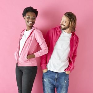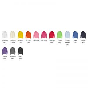 Hupullinen collegepaita, jossa harjattu pehmeä sisäpuoli. Saatavana naisten ja miesten malleina. Kavennettu hupullinen malli, jossa vetoketju vankalla vetimellä. Kaksi etutaskua ja 2×2 ribbineulos hihansuissa sekä paidan helmassa.