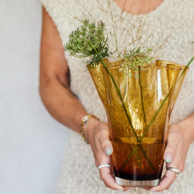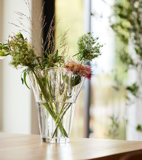 Iso Viva -maljakko. Suupuhallettua lasia. Konepestävä.